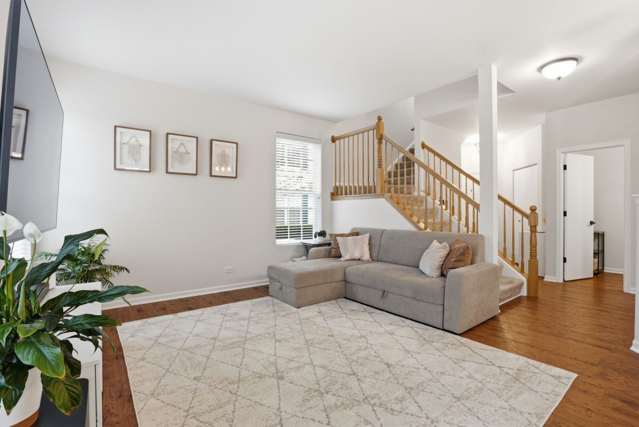 Step into this beautifully maintained, sun-filled 3-bedroom, 2.5-bath end-unit townhome offering two spacious levels of comfortable living. The bright, open-concept main floor seamlessly connects the living room, dining area, and kitchen, featuring durable LVT flooring throughout. The kitchen has been updated with a new quartz countertop and brand-new appliances, while the home also includes fresh paint and a new washer and dryer for added convenience. Upstairs a versatile loft space perfect for a home office, playroom, or additional living area. The spacious primary suite includes a private bath with dual vanities, a soaking tub, and a separate shower. The finished basement includes a dedicated gym area and provides additional space for recreation, storage, or flexible use. Move-in ready and thoughtfully updated, this welcoming home offers comfort, space, and functionality. Schedule your private showing today